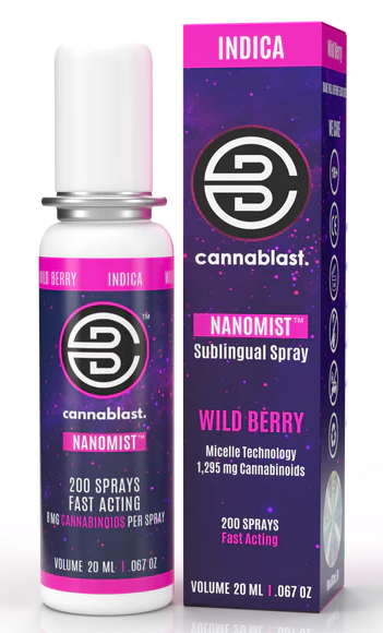 The Cannablast ''Nanomist'' Indica Spray is formulated for relaxation and recovery. This indica-based blend contains wild berry terpenes and utilizes patented MyCell technology, which ensures efficient absorption and reliable efficacy. Ideal for consumers seeking moments of calm and relaxation.